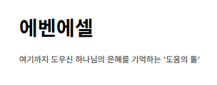 따라서 직역하면 **'도움의 돌(Stone of Help)'**이라는 의미가 됩니다. 이는 단순히 길가에 놓인 돌을 말하는 것이 아니라, 하나님께서 여기까지 우리를 도우셨다는 사실을 잊지 않기 위해 세운 '기념비'를 상징합니다.