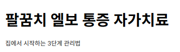 팔꿈치 엘보 통증 자가치료의 핵심은 **'적절한 휴식, 올바른 스트레칭, 보호대 활용'**입니다. 초기 1~2주간 이러한 관리법을 철저히 지킨다면 가벼운 염증은 대부분 호전될 수 있습니다.