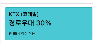 - 할인율: KTX 30%, 무궁화호·ITX 등 일반열차는 최대 50%