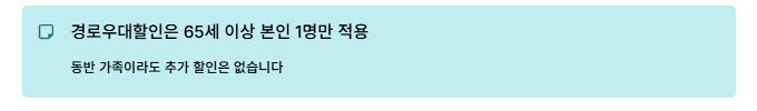 경로우대할인은 65세 이상 본인 ‘1명만’ 적용됩니다.
